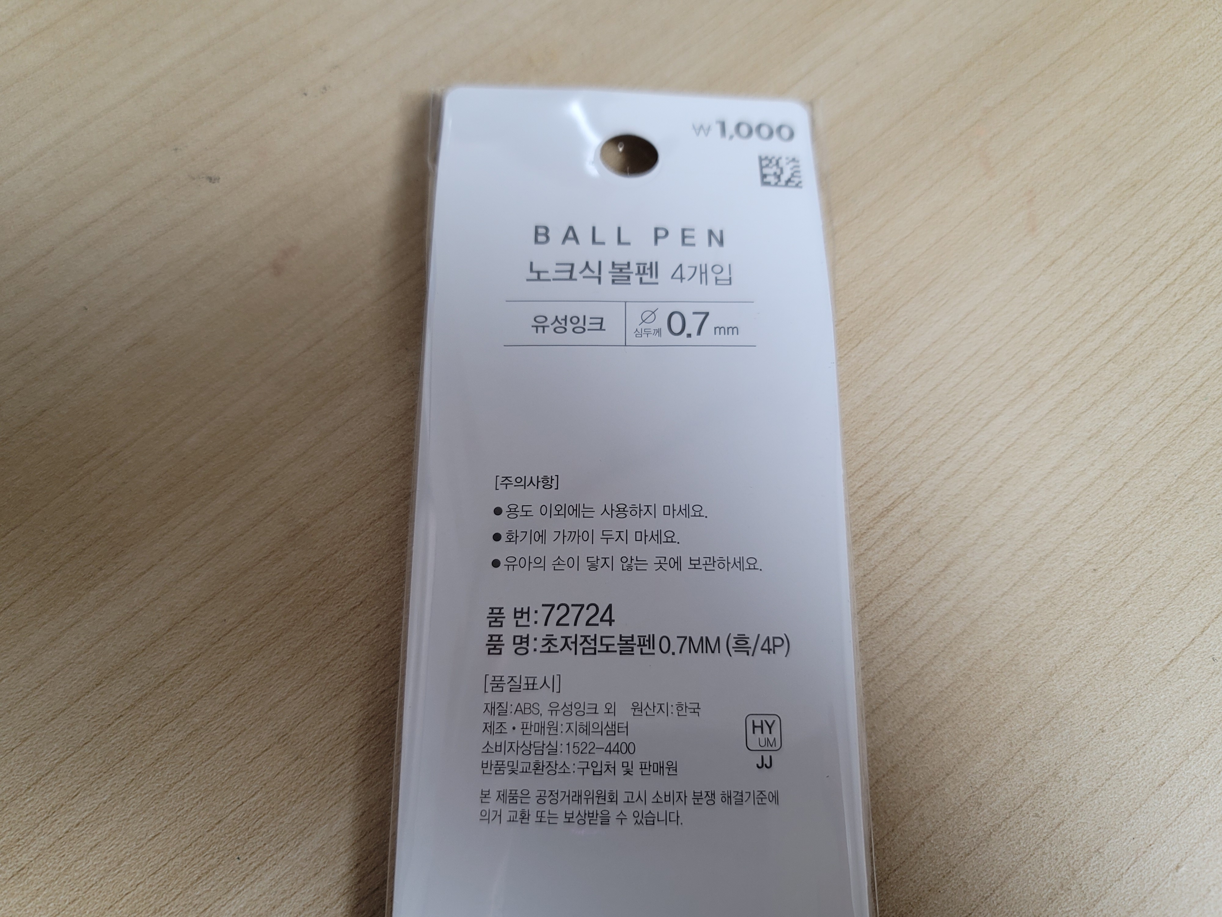 생긴 모양은 일반 볼펜과 크게 다르지 않은 노크식 볼펜인데 한 봉지에 볼펜이 4자루나 들어있어서 싼 맛에 구입을 한 다음 테스트를 해 본 결과 이건 일본에서 온 그 펜과 맞짱을 뜰 정도의 필기감이다.