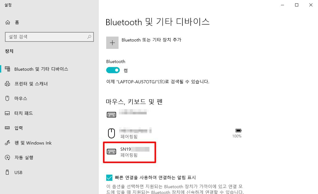 윈도우 블루투스 설정에 들어가니 정말 연결됨으로 표시가 된다.