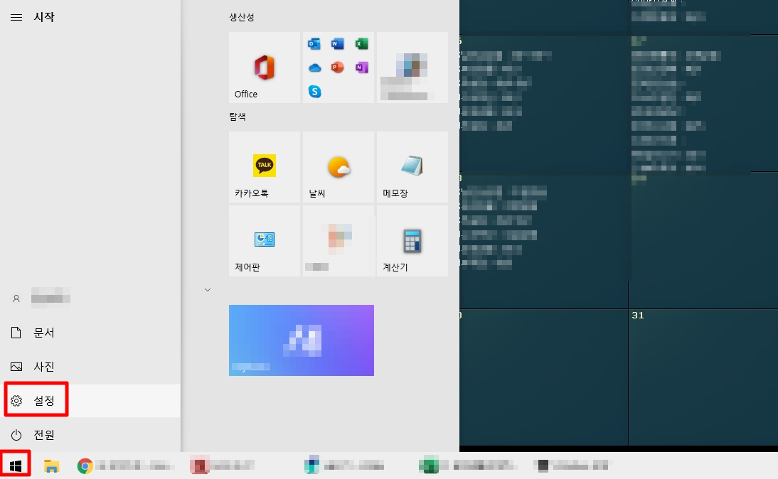 먼저 윈도우 버튼을 눌러 설정으로 들어갑니다.