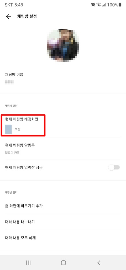 카카오톡 채팅방 배경화면 색상 사진 바꾸기