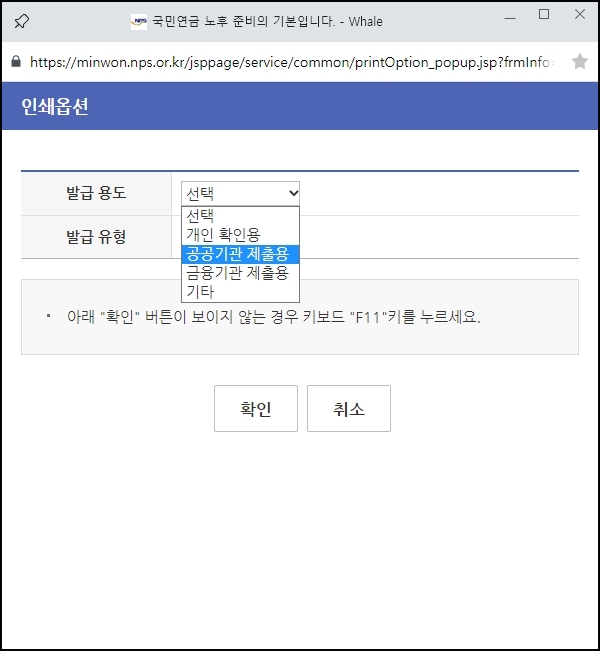 발급 유형은 [공공기관 제출용]으로 한다. (그렇게 중요한 부분은 아님)