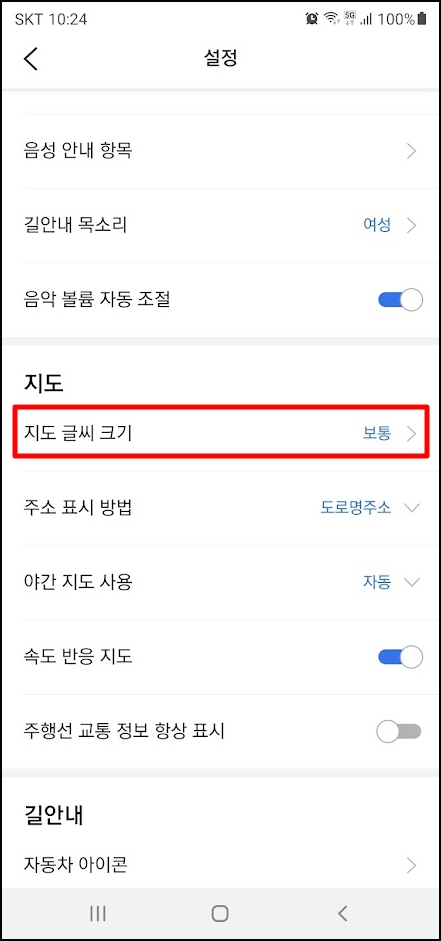 티맵 지도 글씨 크기 조절