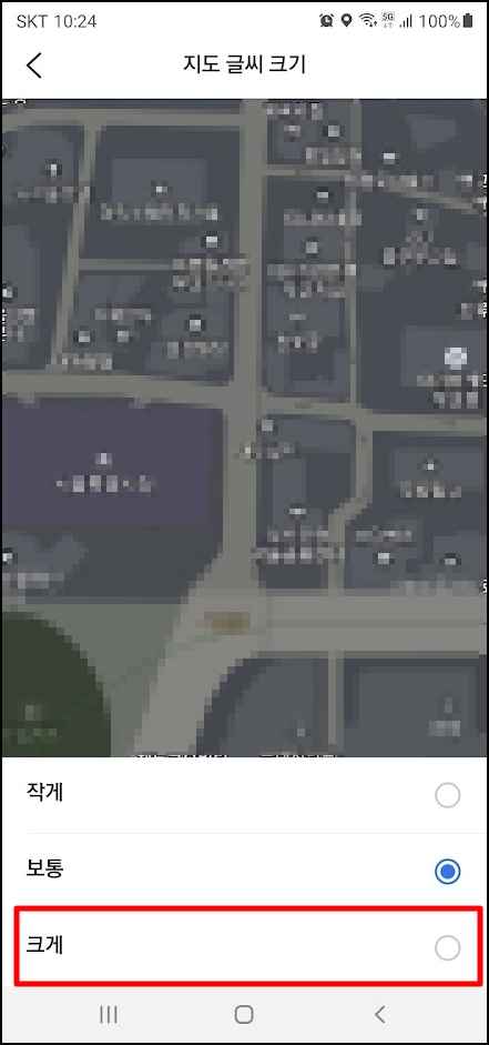 하단의 글씨 크기를 [크게]로 선택한다.