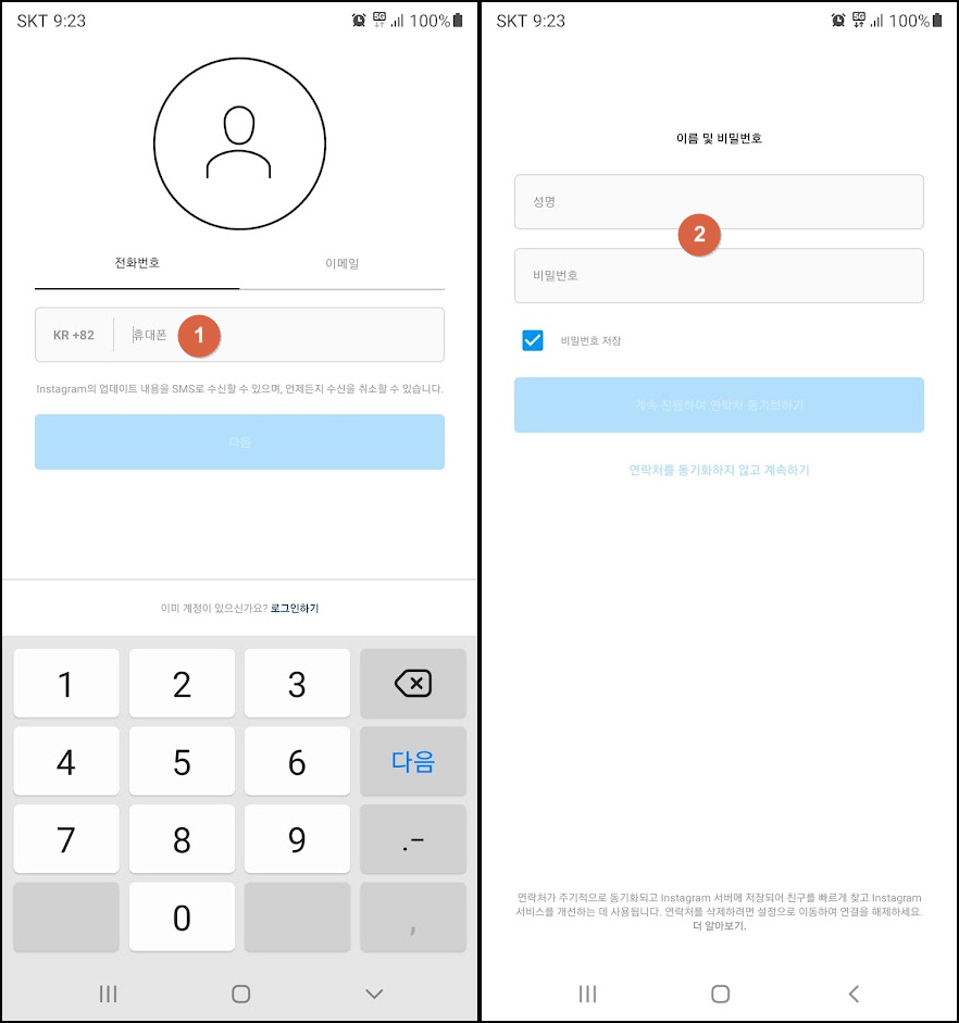 전화번호 및 아이디, 비밀번호를 입력하면 부계정이 생성된다.