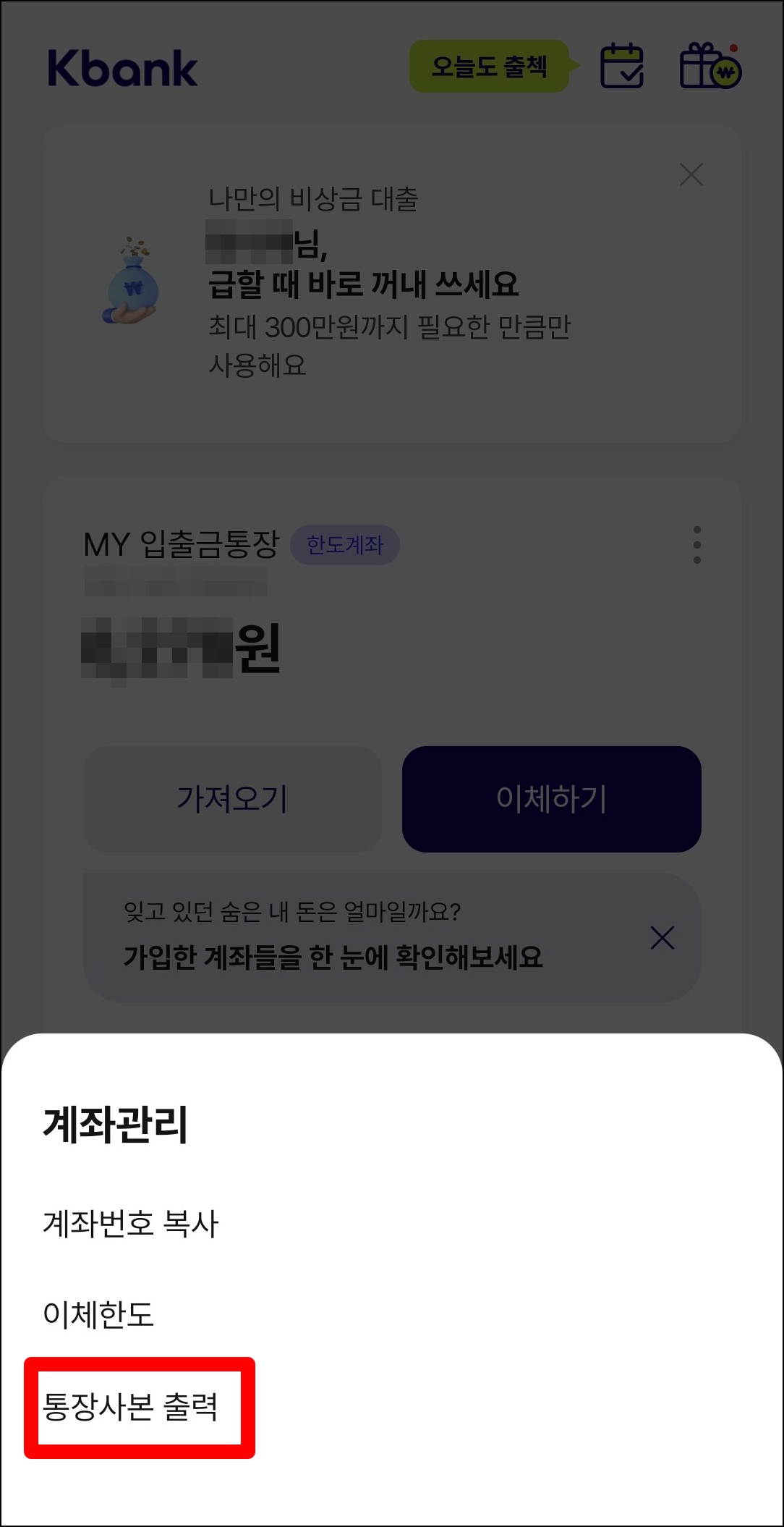 케이뱅크 통장사본 출력