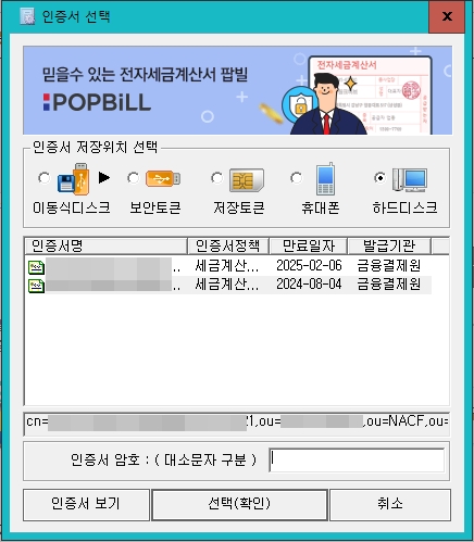 농협 전자세금용 공동인증서 발급과 팝빌 인증서 등록